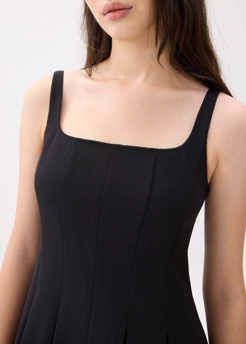 think a flattering square neckline, a drop waist, and a fit and flare silhouette that outshines all the other dresses in your rotation.